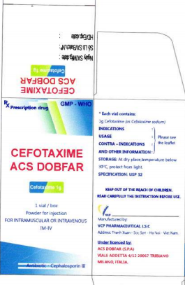 Biệt dược: Cefotaxim VCP ,Cefotaxime ACS Dobfar, Viataxim ,Vitafxim, Zentotacxim CPC1