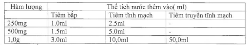 Chú ý: Ở các bệnh nhân suy thận, dung liều khời đầu 1 g và sau đó liều được thiết lập dựa trên độ thanh thải creatinin