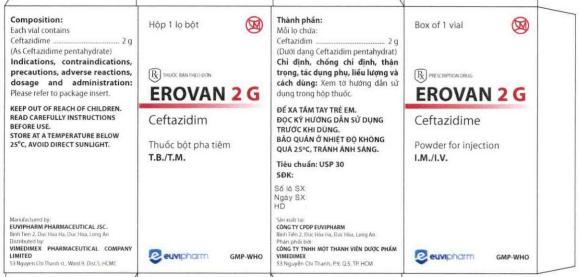 Biệt dược: Cefjidim , Erovan