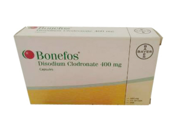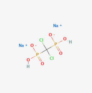 Clodronate về mặt hóa học thuộc nhóm bisphosphonate, có tác dụng hóa học trên mô xương.