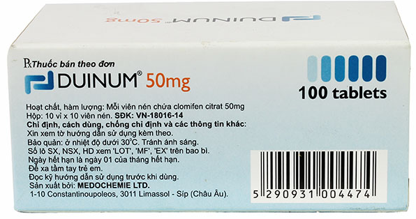 DUINUM 50mg được dùng trong điều trị phụ nữ vô sinh, không phóng noãn.
