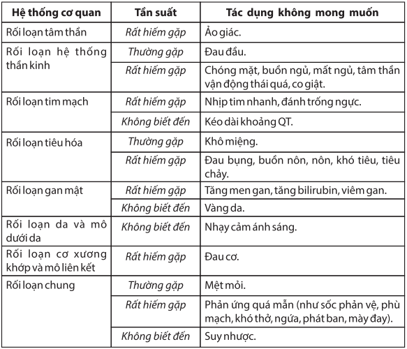 Các tác dụng không mong muốn: