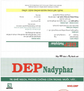 Thuốc mỡ DEPNadyphar với hoạt chất diethylphtalat là dạng thuốc mỡ mịn, đồngnhất,thoa lên da tạo lớp mỏng, dính được vào da, dùng trị ghẻ ngứa, phòn chồng muỗi, vắt.