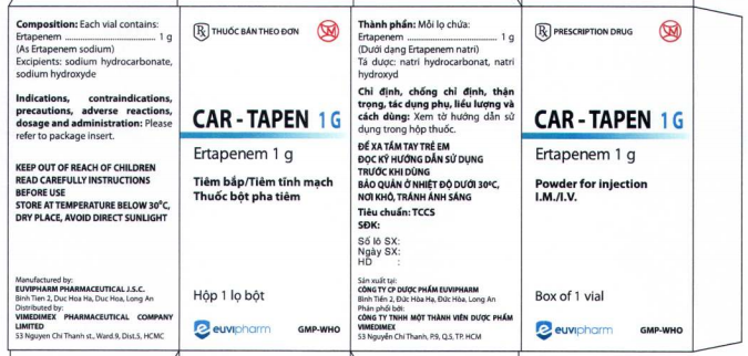 Lọ bột pha tiêm chứa ertapenem natri tương đương với 1 g ertapenem base.