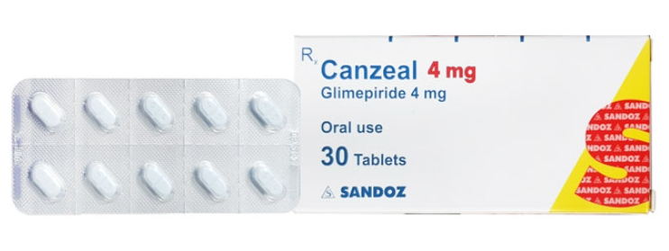 Viên nén Canzeal 4mg: Viên nén màu xanh da trời, hơi lốm đốm, thuôn dài, phẳng, vát cạnh ở hai mặt, khắc “G4” trên một mặt.