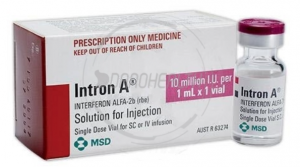 Bệnh u sắc tố ác tính: Bột đông khô Intron A nên được pha bằng cách thêm 1 ml nuớc cất pha tiêm vào lọ. Lượng Interferon được tính trước cho một liều thích hợp sau đó được rút ra và thêm vào trong 100 ml dung dịch muối đẳng trương tiệt trùng và tiêm truyền trong khoảng 20 phút.