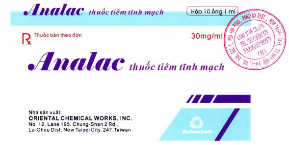 Ông tiêm (ketorolac trometamol): 30 mg/ml.