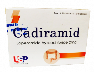 CADIRAMID chứa hoạt chất Loperamid hydrochlorid thuộc nhóm thuốc trị tiêu chảy.