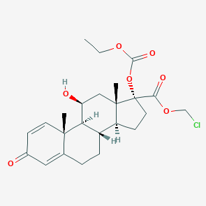 Loteprednol etabonate có cấu trúc tương tự các corticosteroid khác. Tuy nhiên trong cấu trúc của nó vắng mặt nhóm ketone ở vị trí số 20. Nó là một chất rất thân dầu, và nhờ đó dễ thâm nhập vào các tế bào. Loteprednol etabonate được tổng hợp bằng cách làm thay đổi cấu trúc của các hợp chất tương tự prednisolon sao cho tạo được một hợp chất mà sản phẩm chuyển hóa không còn hoạt tính.