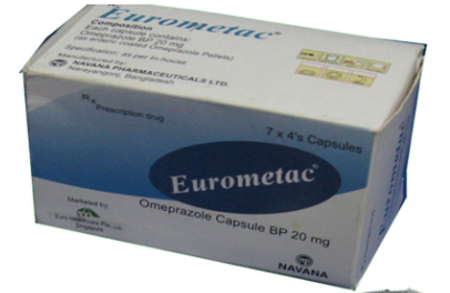 Sự hấp thu omeprazole phụ thuộc vào liều uống. Sự giảm độ acid trong dạ dày liên quan đến diện tích dưới đường cong nồng độ Omeprazole theo thời gian, và không liên quan đến nồng độ trong huyết tương. Thuốc có thể tự làm tăng hấp thu và khả dụng sinh học của nó do ức chế dạ dày bài tiết acid. Thuốc gắn nhiều vào protein huyết tương (khoảng 95%) và được phân bố ở các mô, đặc biệt là ở tế bào viền của dạ dày. Khả dụng sinh học của liều uống một lần đầu tiên là khoảng 35%, nhưng sẽ tăng lên khoảng 60% khi uống tiếp theo mỗi ngày một liều, thuốc đạt tác dụng tối đa sau khi uống 3 – 5 ngày. Tuy nửa đời thải trừ ngắn (khoảng 40 phút), nhưng tác dụng ức chế bài tiết acid lại kéo dài, nên có thể dùng mỗi ngày chỉ 1 lần.