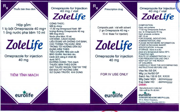 Ðể có dung dịch tiêm tĩnh mạch, phải pha bột omeprazol với dung môi bán kèm theo. Không được dùng dung môi khác.