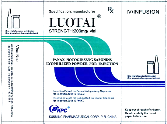 Luotai là dạng bột đông khô pha tiêm chứa Panax notoginseng saponin, chiết xuất từ cây Panax notoginseng (Burk.) F.H.Chen (họ Araliaceae). Luotai có chứa 24 loại hợp chất trong đó thành phần hoạt động chính gồm Panax notoginsenoside Rg1; Panax notoginsenoside Rd; Panax notoginsenoside Rb1và Panax notoginsenoside R1 , chiếm trên 80% hàm lượng saponins của Panax notoginsenoside trong đó Panax notoginsenoside Rg1 chiếm 25-35%; Panax notoginsenoside Rb1 chiếm 30-40%; Panax notoginsenoside Rd 7-15 %, và Panax notoginsenoside R1 chiếm 5-10%.