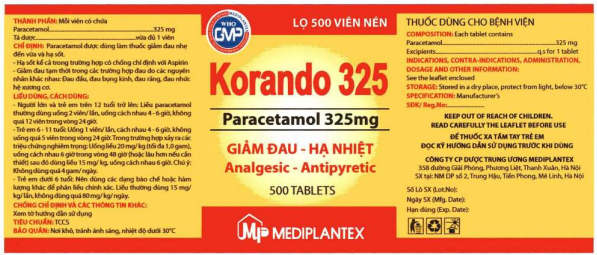 HDSD Thuốc Korando 325 do Công ty cổ phần dược trung ương Mediplantex sản xuất (2016).