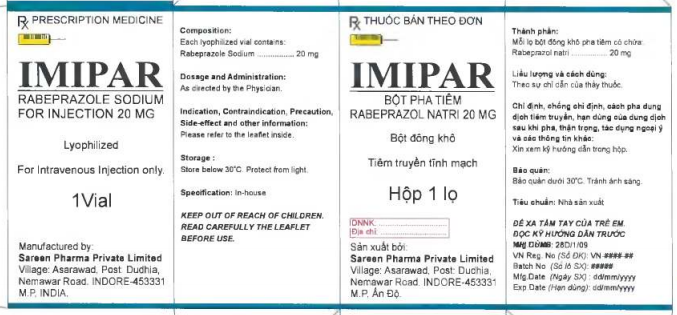 Mỗi một lọ có chứa 20mg bột Rabeprazole được pha với 5 ml nước pha tiêm để được nồng độ 4mg/ml. Sau khi pha, dung dịch trong suốt không màu và có thể dùng trong vòng 4 giờ nếu bảo quản ở nhiệt độ phòng và trong 24 giờ nếu bảo quản trong tủ lạnh. Nên kiểm tra dịch pha và không sử dụng nếu có thay đổi màu sắc, kết tủa, đục hoặc rò rỉ. Nên loại bỏ phần thuốc không sử dụng.