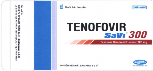 * Dự phòng nhiễm HIV: uống 1 viên SaVi Tenotovir 300 mỗi ngày, kết hợp với các thuốc kháng retrovirus khác. Phải dùng thật sớm, trong vòng vài giờ sau khi bị phơi nhiễm và tiếp tục dùng trong 4 tuần tiếp theo nếu thuốc được