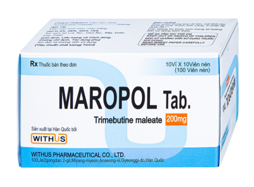 Trimebutin maleat được hấp thu tốt bằng đường uống, đạt nồng độ tối đa trong máu sau khi uống từ 1 đến 2 giờ. Trimebutin maleat được đào thải nhanh chủ yếu qua nước tiểu: trung bình 70% sau 24 giờ.
