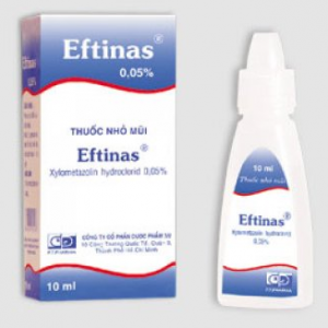 Thuốc xịt mũi Eftinas có hoạt chất là Xylometazolin. Dùng xịt mũi, Xylometazolin có tác dụng co mạch, chống sung huyết ở niêm mạc mũi và hầu họng.